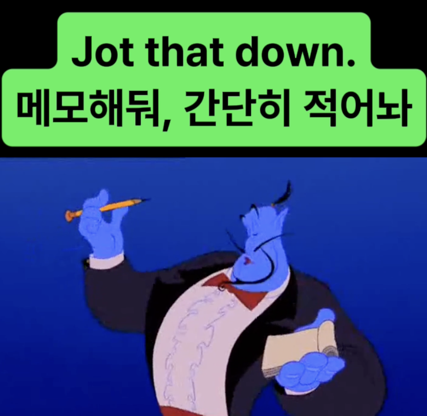 'Jot that down'은 상대방에게 지금 내가 말한 것이나
