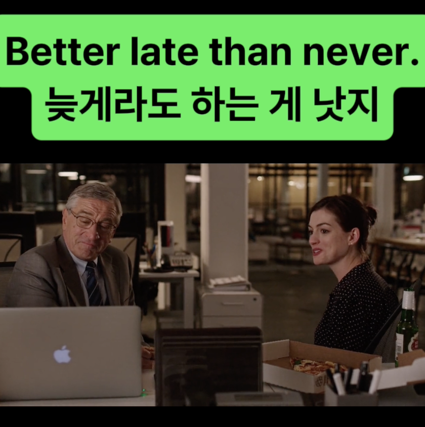 | Better late than not at all. | 아예 안 하는 것보단 늦는 게 나아. | 'Better late than never'와 거의 동일한 표현. |